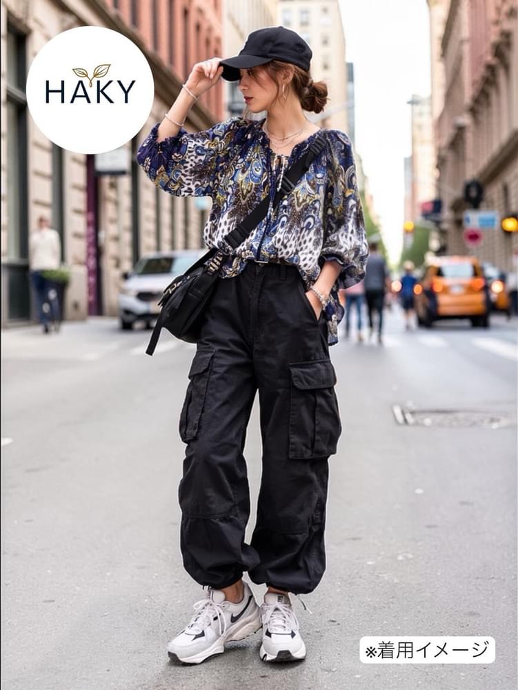 \1枚で2つの着こなし楽しめる✨/ 存在感のある柄ブラウスを主役に 雰囲気の違う2コーデをご提案💙 デニムでラフに着ても、 カーゴパンツでストリートに振っても◎ 着回し力高すぎる優秀アイテム💫 気分やシーンでスタイルチェンジできるのが嬉しい☺️🔥 ⸻ 【Style 1】 👕 top:総柄ブラウス(ネイビー系) 👖 bottom:デニムパンツ(ブルー) 👜 bag:トートバッグ(アイボリー) 👟 shoes:スニーカー(ブラック) 【Style 2】 👕 top:総柄ブラウス(ネイビー系) 👖 bottom:カーゴパンツ(ブラック) 🧢 cap:キャップ(ブラック) 🎒 bag:ショルダーバッグ(ブラック) 👟 shoes:スニーカー(ホワイト) ⸻ #着回しコーデ #ストリートコーデ #ヴィンテージコーデ #デニムコーデ #カーゴパンツ #大人カジュアル #海外ファッション #こなれ感 #着回し術 #HAKYコーデ storefront古着屋HAKY