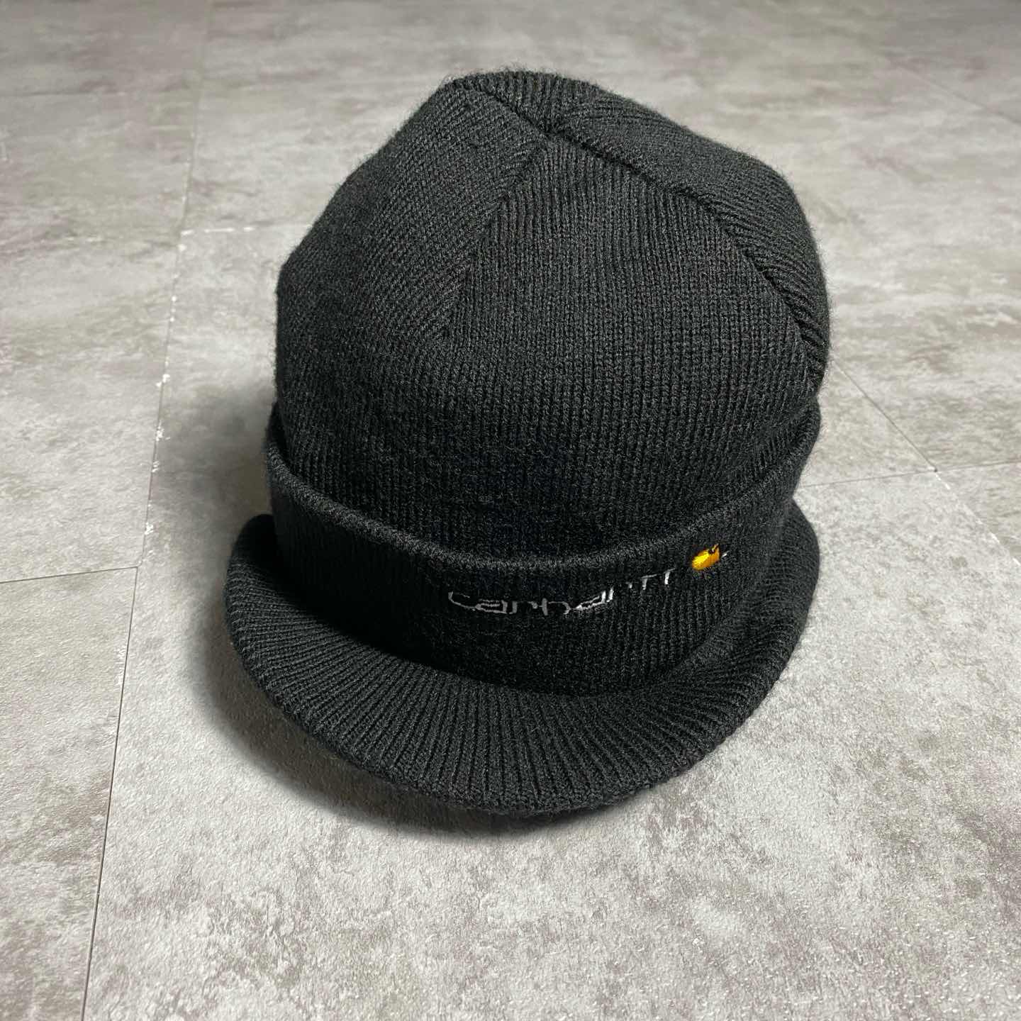 carhartt カーハート 刺繍ロゴ 黒 ブリム付きニットキャップ ニット帽