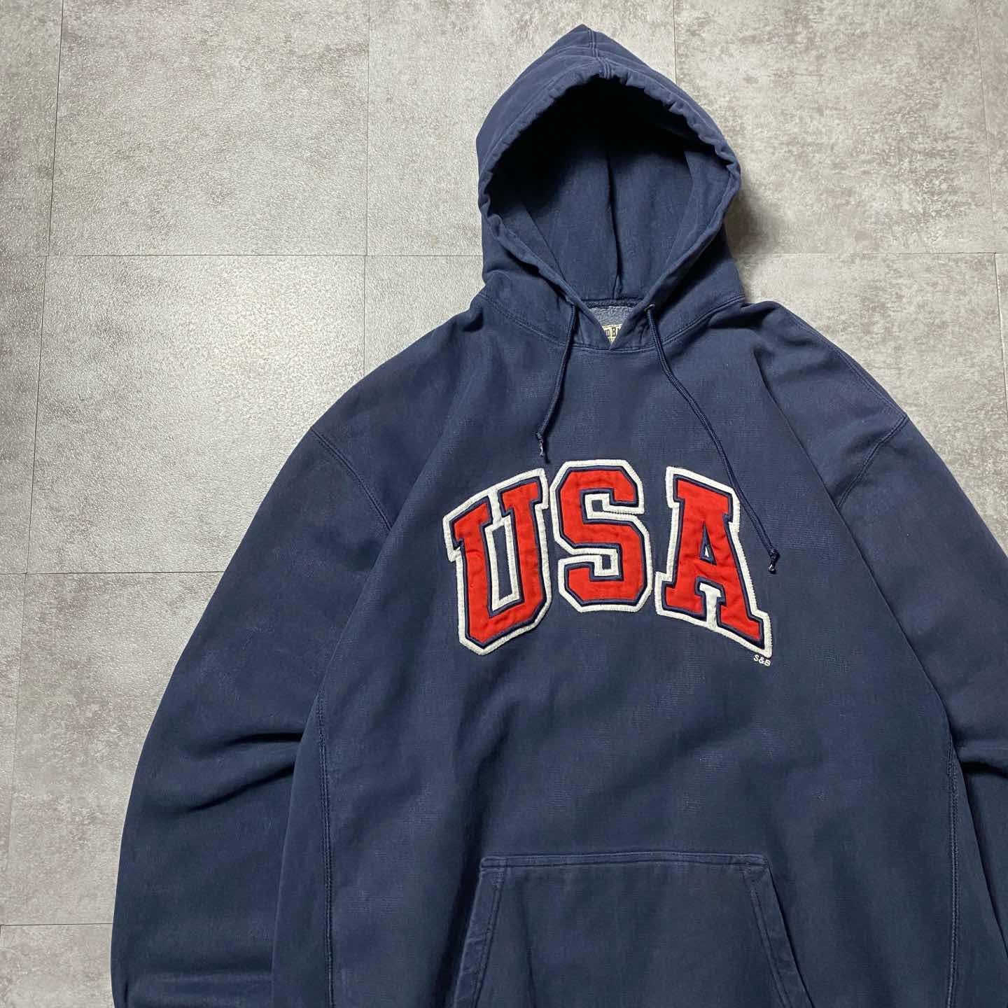 90'sスティーブ&バリーズ リバースウィーブ USAロゴ スウェット パーカー