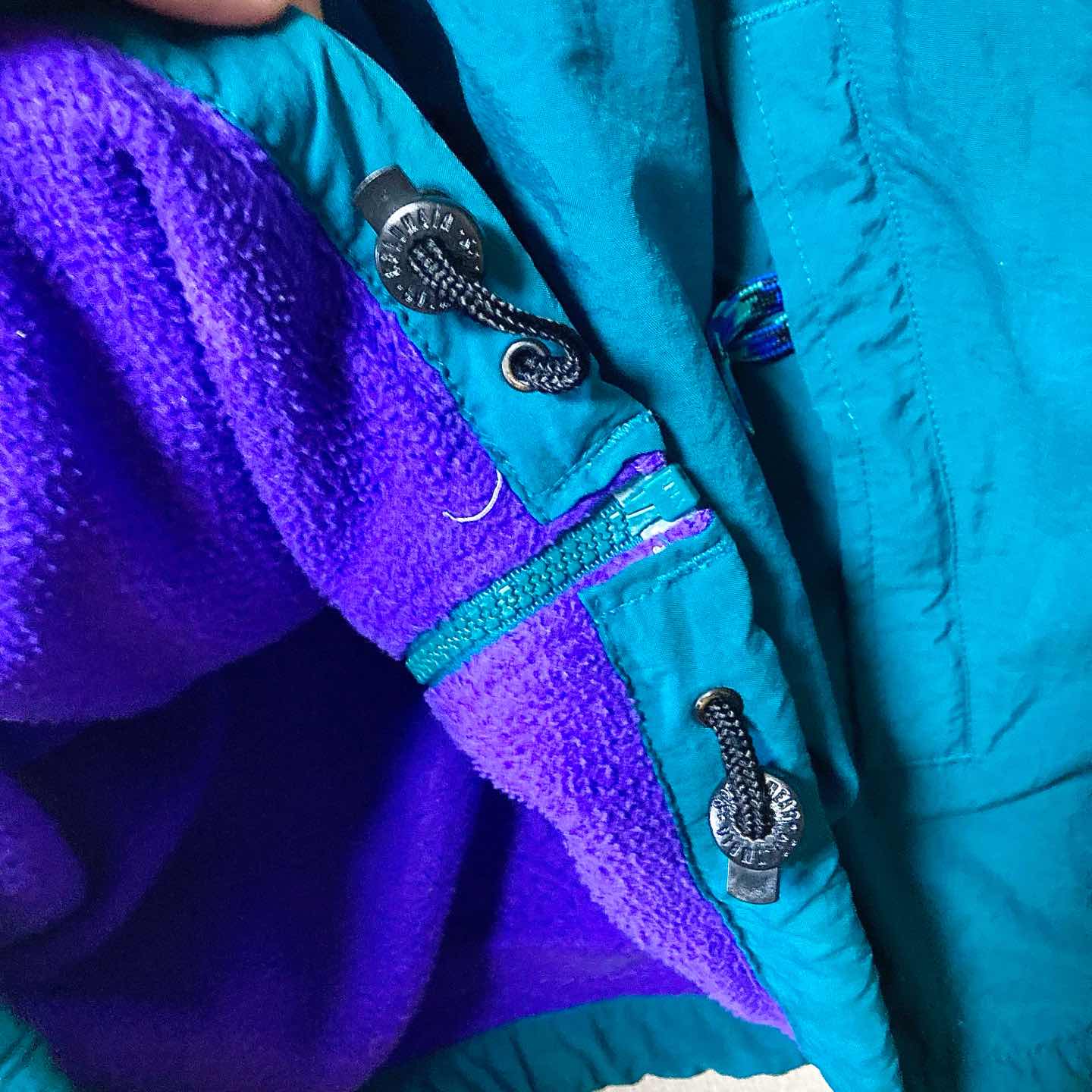 Multi-color Columbia with nylon shell × fleece lining. Relaxed fit; adjustable drawcord hem. Clean and ready to wear. • Size (flat): Length 76cm / Pit-to-pit 62cm ≒ L • Features: Colorblock, fleece lining, drawcord, zip pockets • Condition: Good vintage (minor wear, no major damage) • Shipping: Ships in 1–2 days, protected packaging 【Hashtags】 #Columbia #colorblock #teal #purple #nylon #fleece #hooded #drawcord #vintage #90s #L #コロンビア #配色 #ティール #パープル #ナイロン #フリース #ドローコード #古着 #Lサイズ