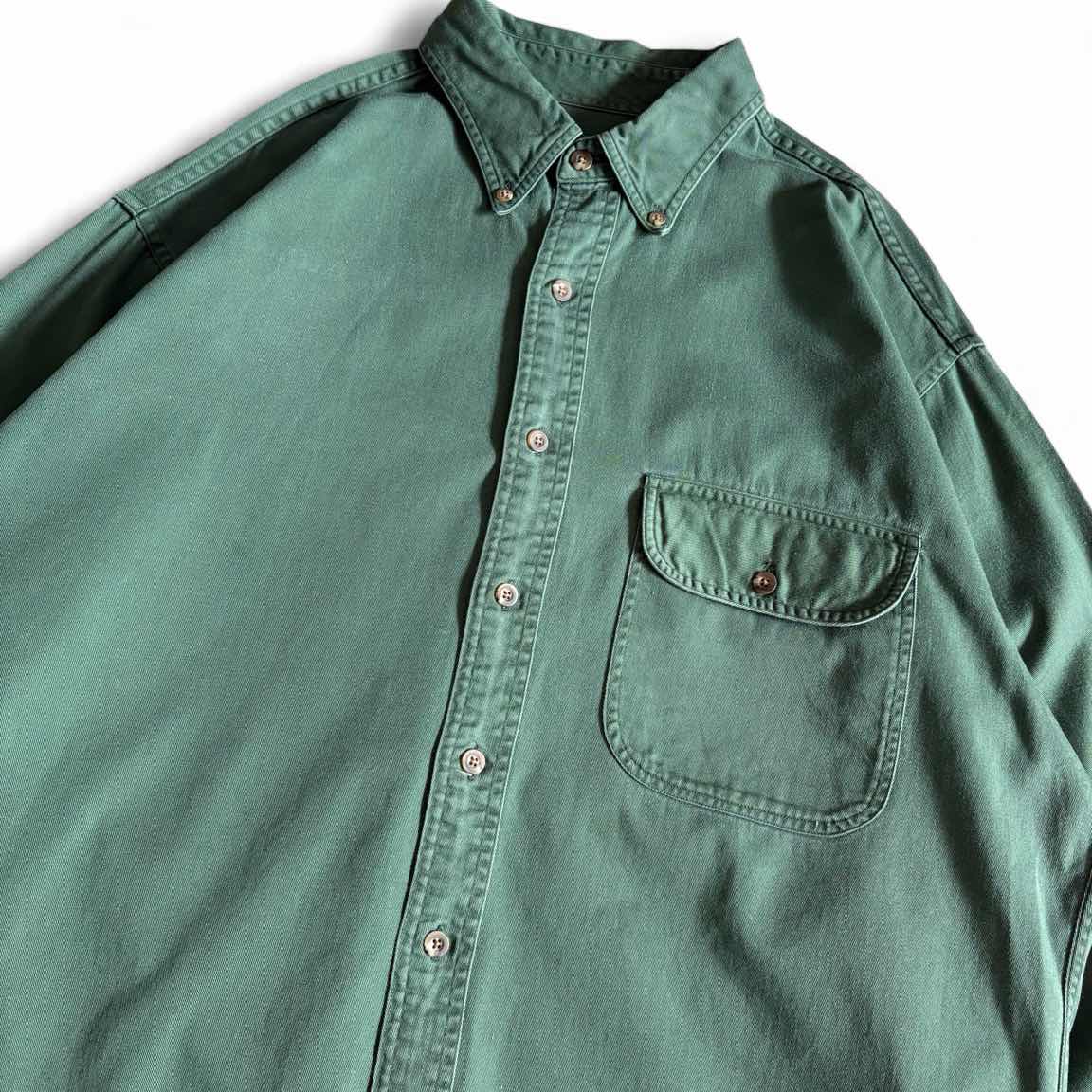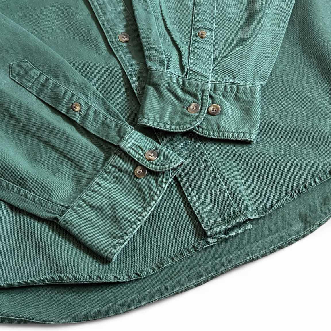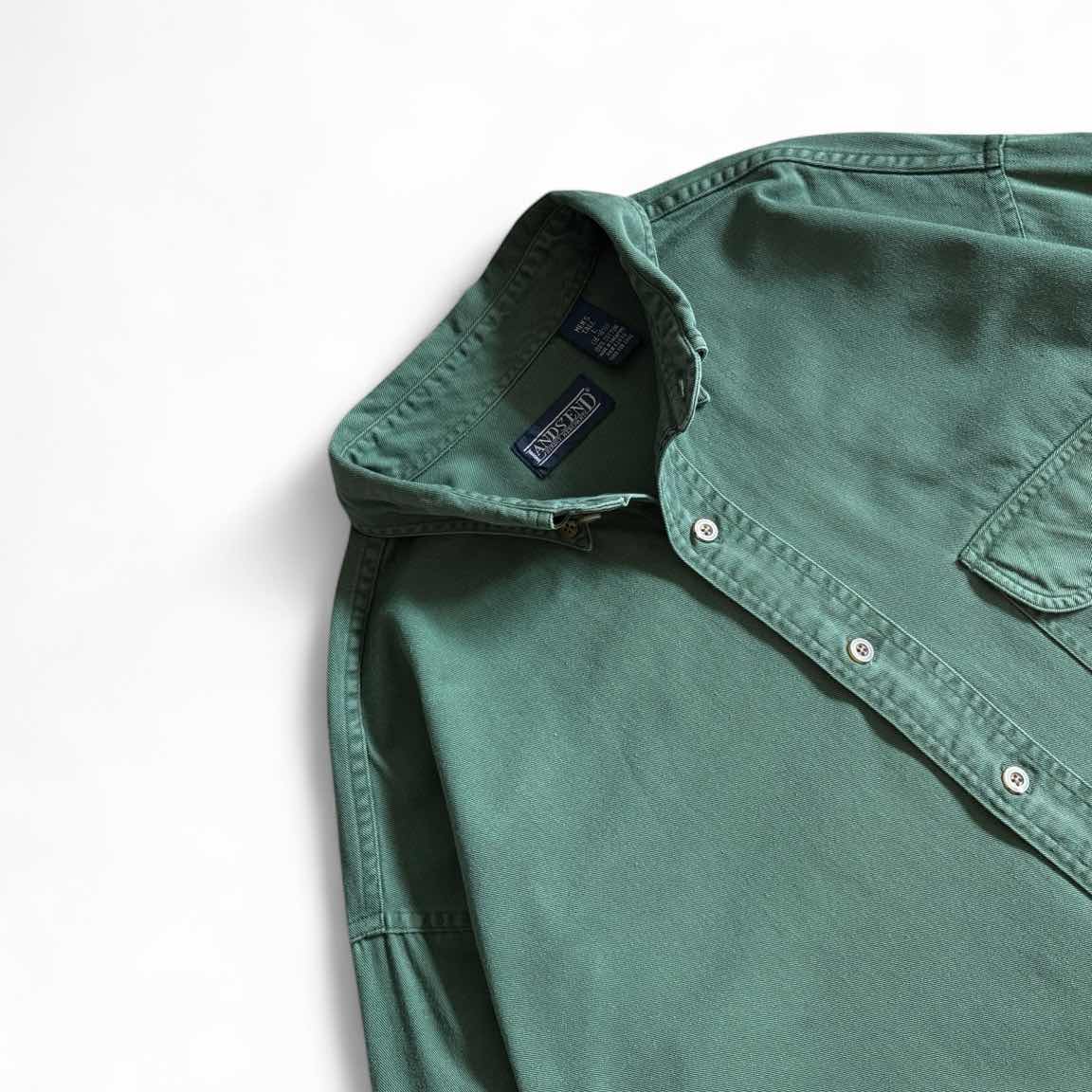 ○商品説明 90s LANDS'END 英国イングランド南西部、 コーンウォール半島の先端に位置する岬。 LANDS'ENDの意味は「地の果て」だそう。 最高な一枚です。 是非。 ○サイズ 表記 L 平置き ・肩幅51cm ・身幅60cm ・袖丈62cm ・着丈84cm ○商品の状態 B A:使用感がほとんどなく、汚れやシミもなし B:多少使用感はあるが、汚れやシミも少ない C:使用感があり、汚れやシミがある D:使用感があり、大きな汚れや破れあり ○色 濃いグリーン #90s#LANDS'END#ランズエンド#コットンシャツ