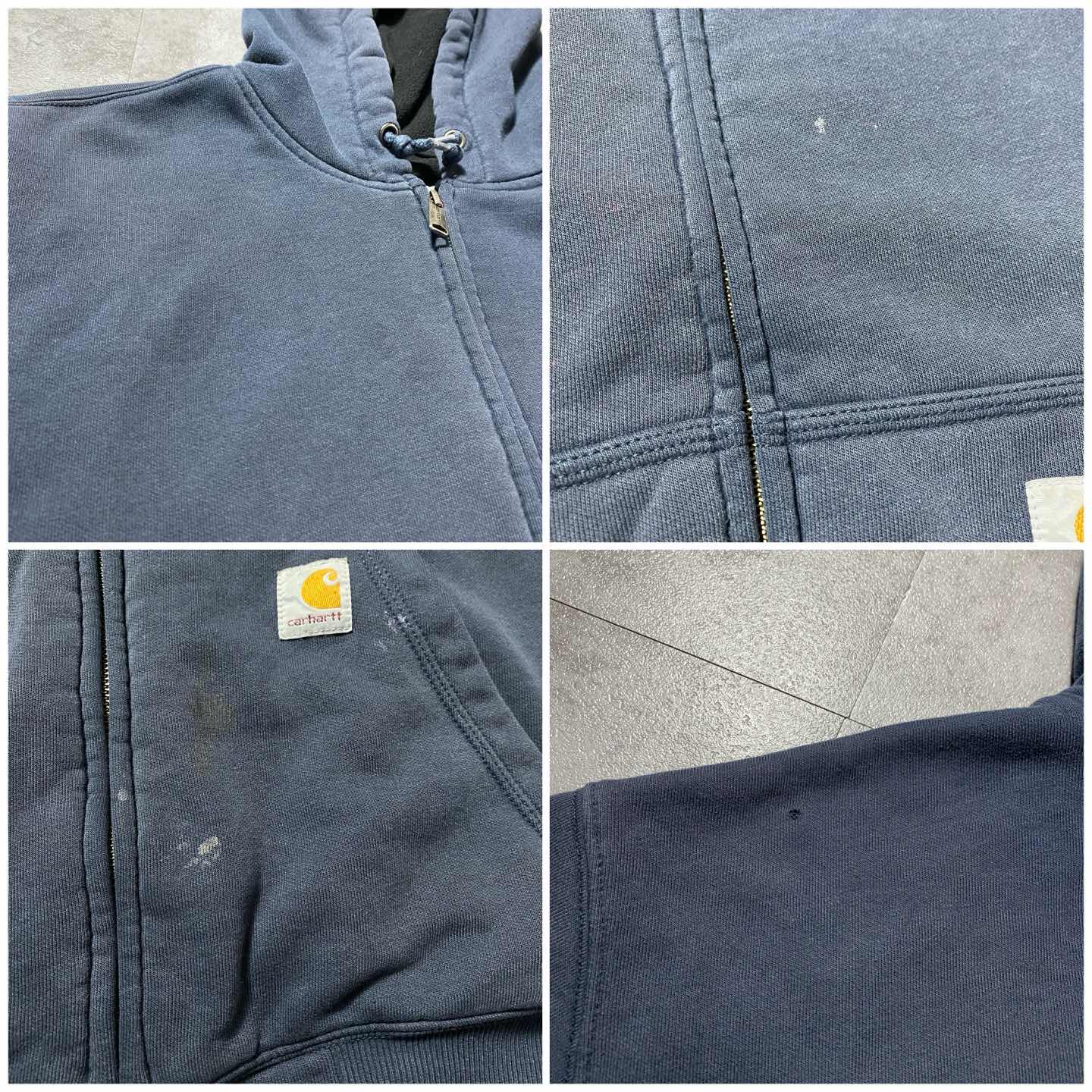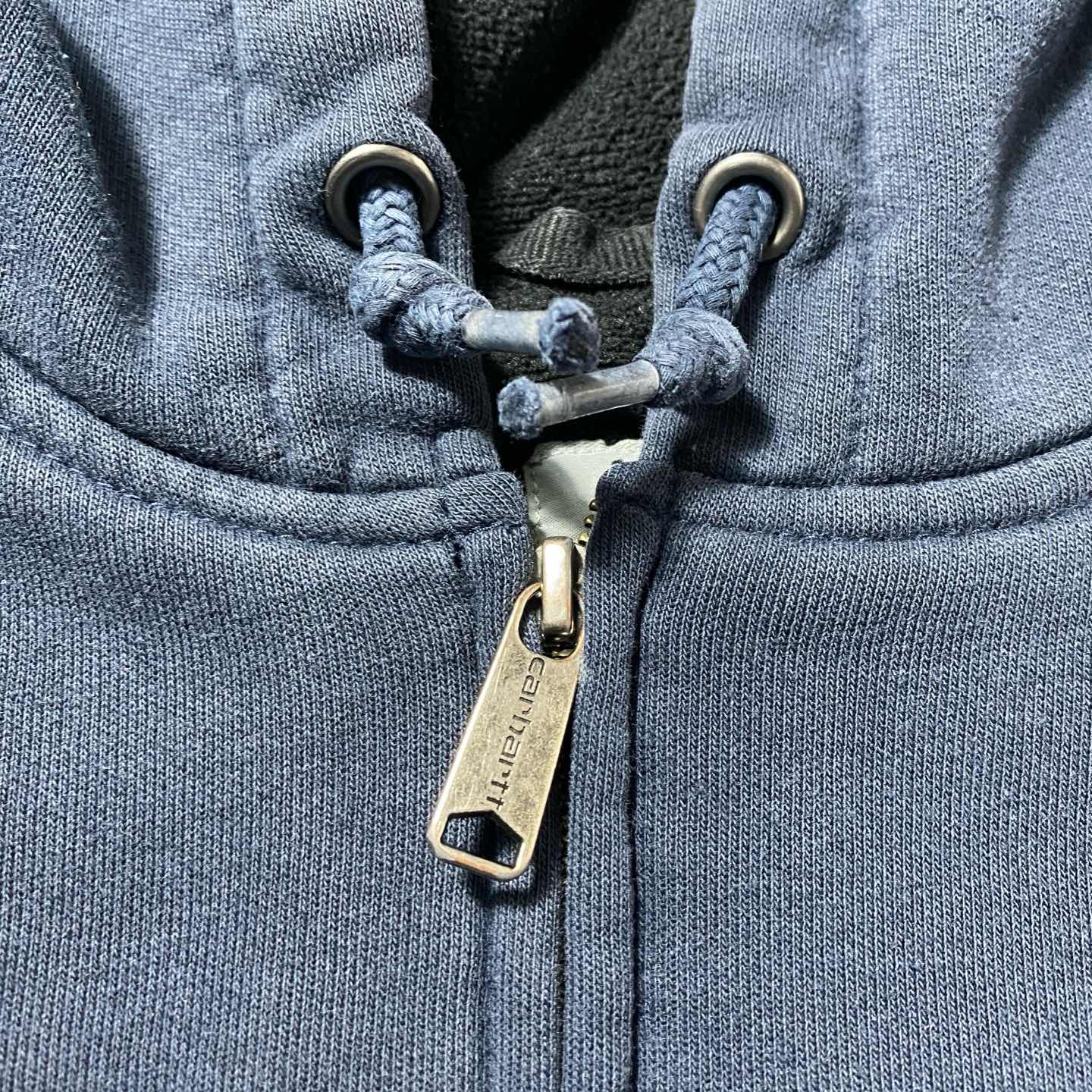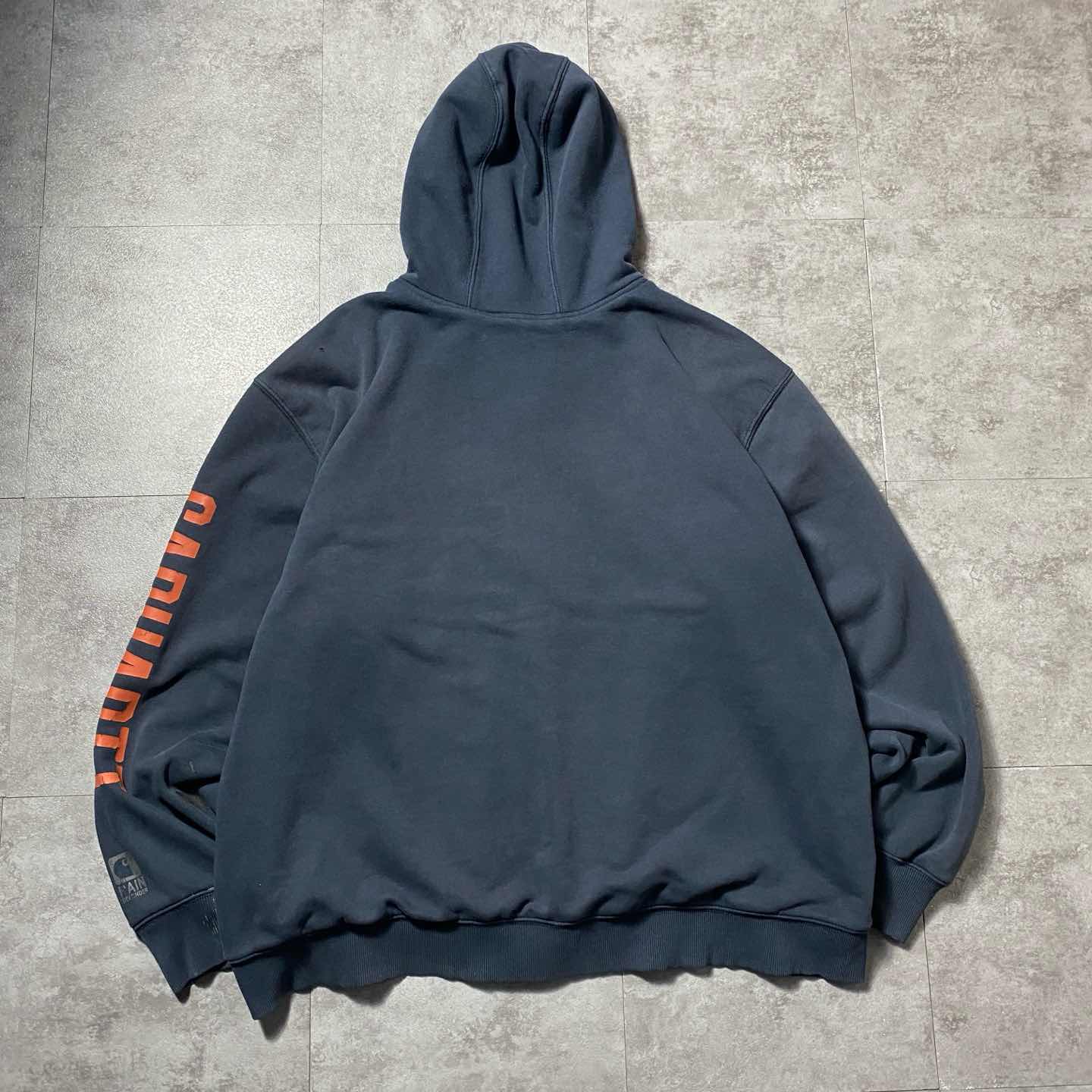 【XL】carhartt 最高フェード 刺繍企業ロゴ グレー ジップパーカー