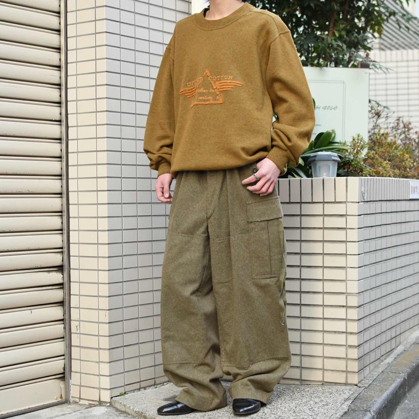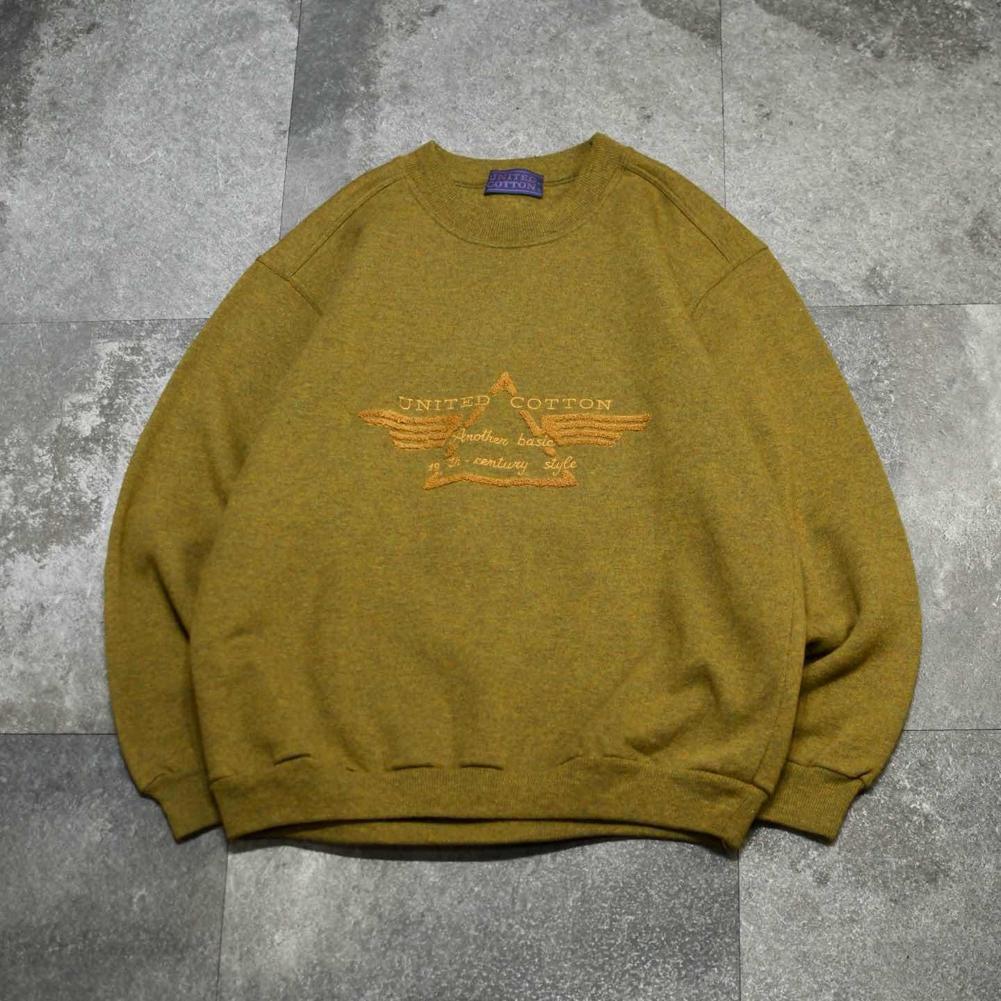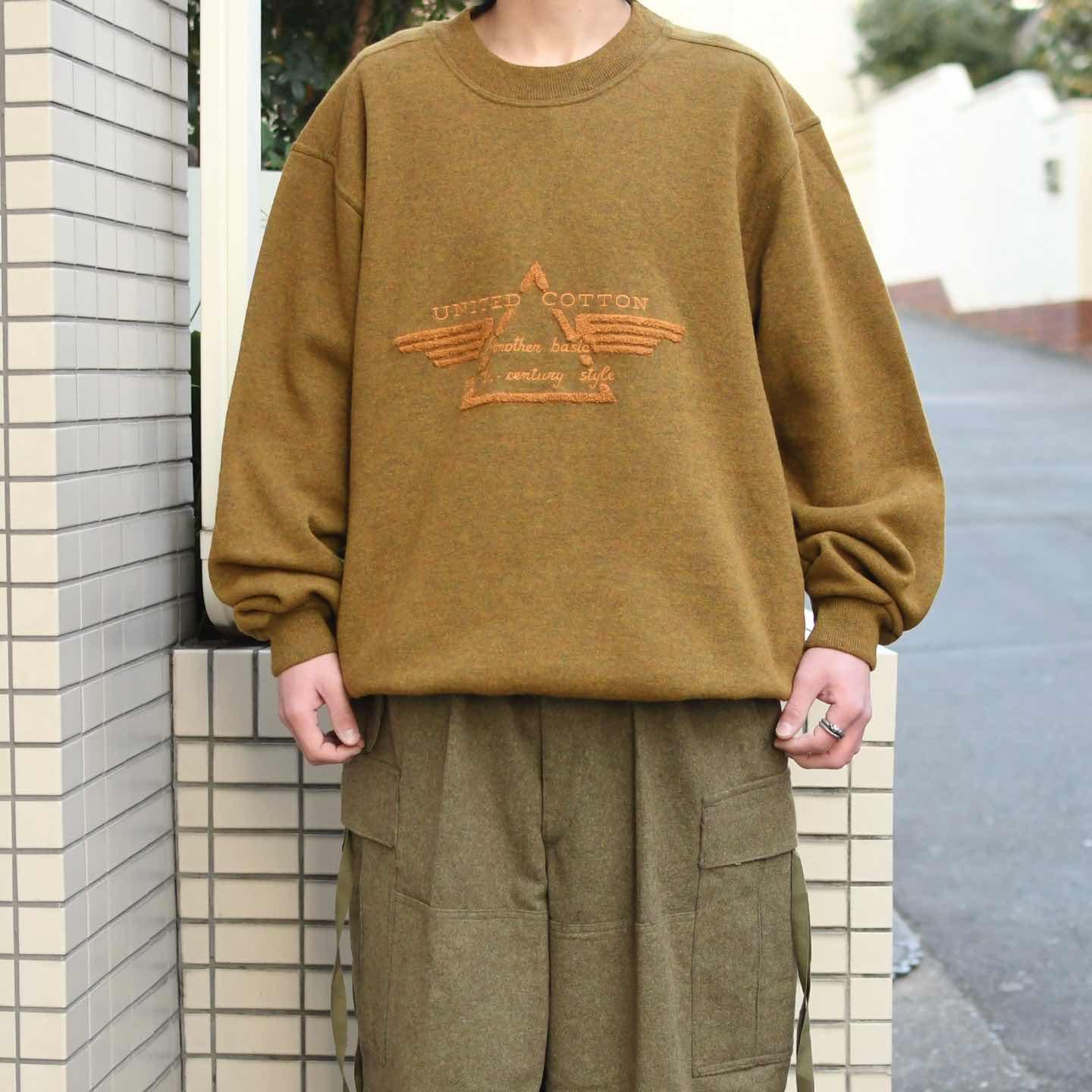 SIZE:L 着丈75cm 肩幅60cm 身幅63cm 袖丈66cm fabric/wool・nylon made in italy 着用画像 173cm/58kg ウールでスウェット。 初見ですし、なんとも面白いアイテムです。 ブランド名”UNITED COTTON”でありながら、 一切コットンを使用していないのも推し、、、 上品なメランジのボディに、ウールでありながら 裏地はふわっとしており、肌に刺激が無く着れるのは個人的に嬉しいところでした。 カジュアルになり過ぎず、スラックスなんかとも 合わせやすい変わり種スウェットとして、 手元にどうでしょう。 ※首元のリブにピンホールあり。 ※撮影状況により、実物と多少色が異なる場合が ございます。 ※古着を取り扱っているため、気づかない汚れや ほつれ等がある場合がございます。 ※サイズは着用感で選んでおり、 表記サイズは説明欄の最初に記載しております。 オーバーサイズ old vintage ヴィンテージ used 80's 90's アメリカ古着 ユーロ古着 POLO RALPH LAUREN Eddie Bauer OLD GAP LANDS' END ランズエンド LLBean エルエルビーン オールドギャップ エディーバウアー ラルフローレン ブルックスブラザーズ Brooks Brothers カーキ 茶色 などがお好きな方 #vintage #オーバーサイズ #old #used #90s #80s #古着 #ヴィンテージ #アメリカ古着 #ユーロ古着 #LLBean #エルエルビーン #EddieBauer #エディーバウアー #oldgap #オールドギャップ #LANDSEND #ランズエンド #NAUTICA #ノーティカ #ラルフローレン #POLORALPHLAUREN #ブルックスブラザーズ #BrooksBrothers #スウェット #トレーナー #デザインスウェット