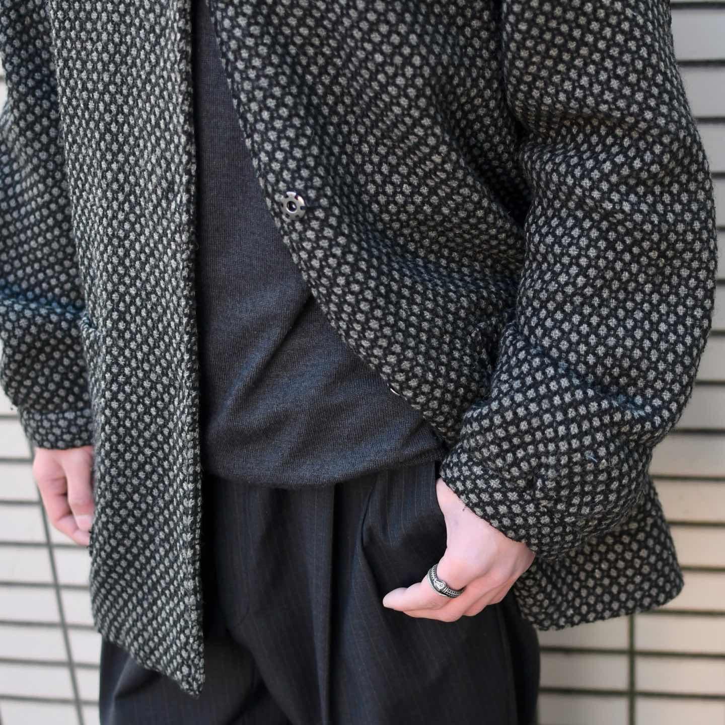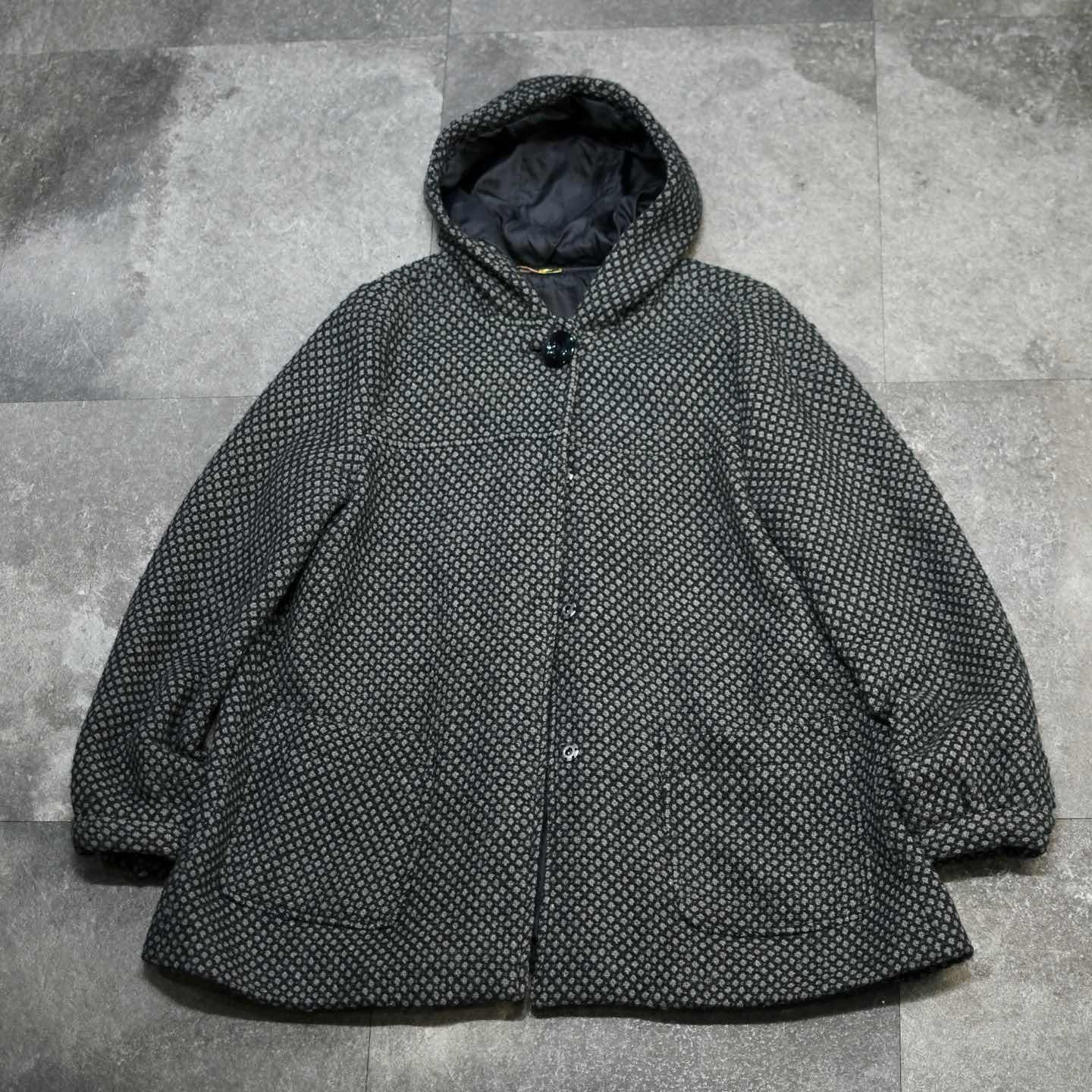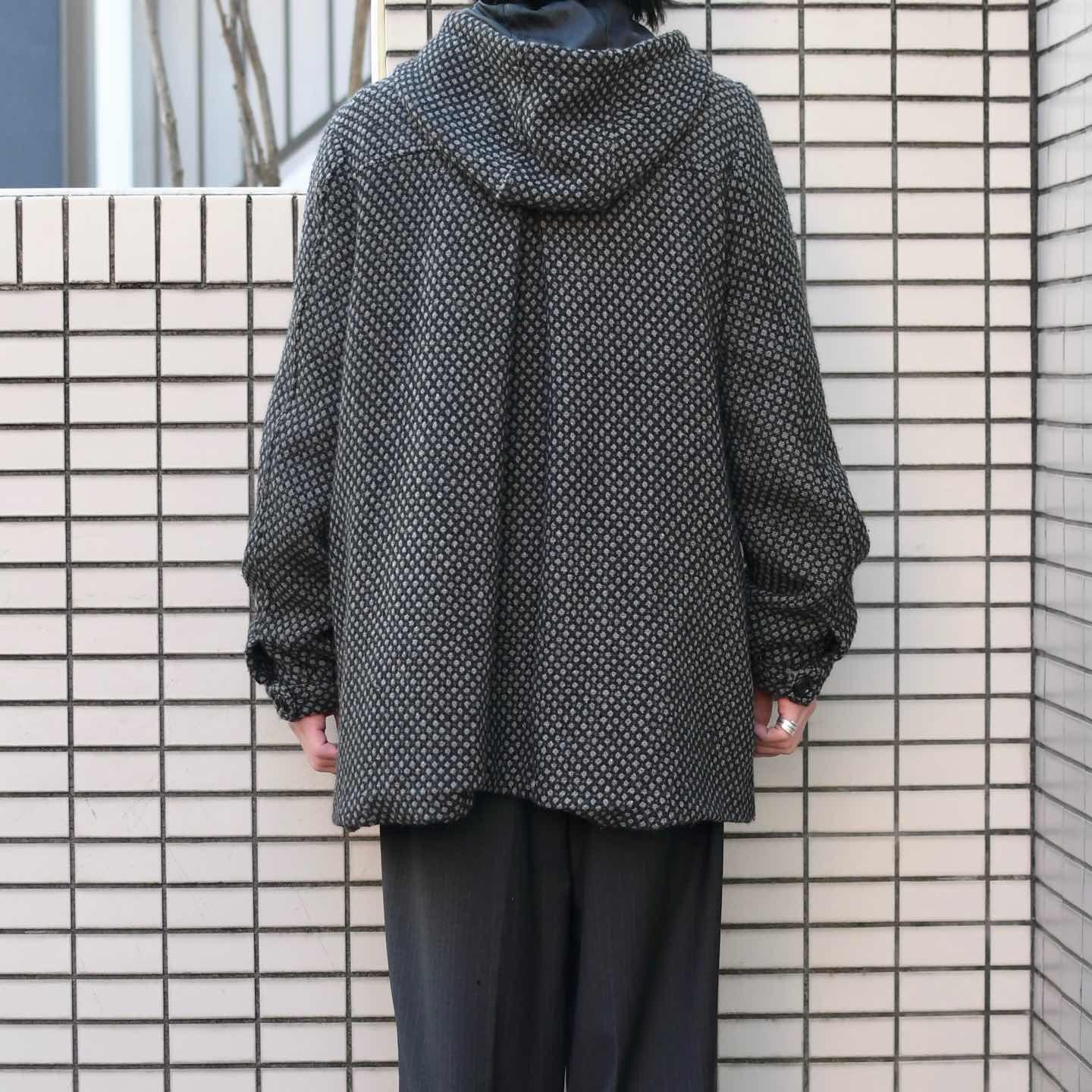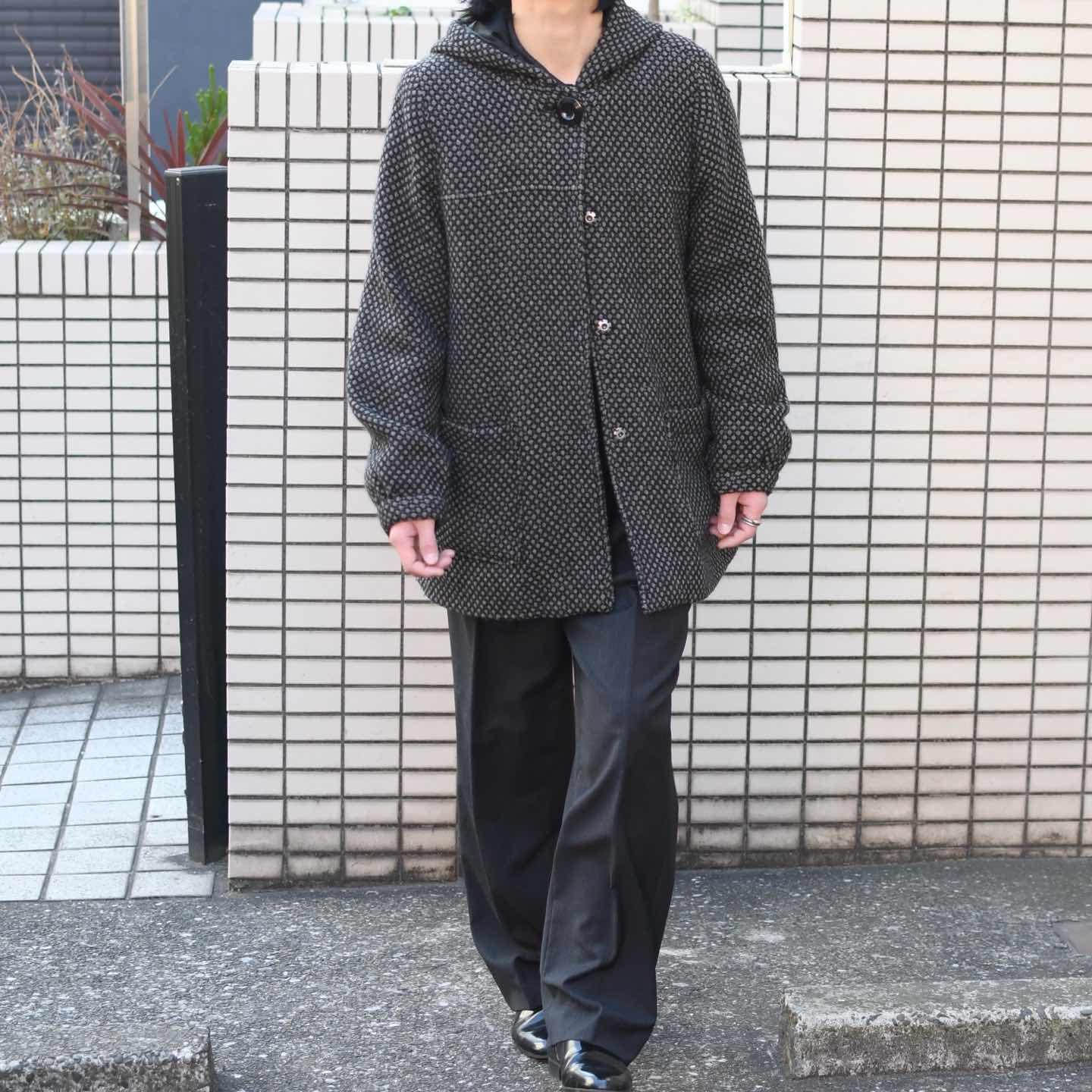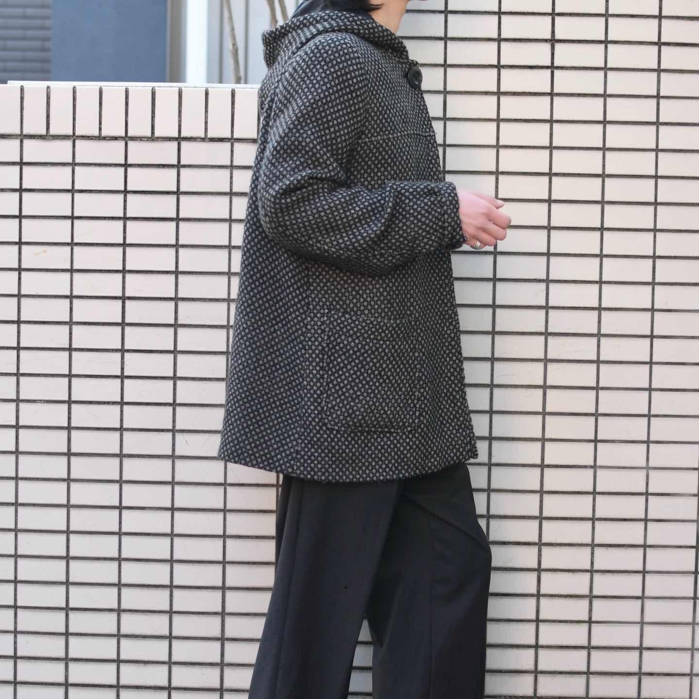 古着 デザイン ウールジャケット フーディ ジャケット ハーフコート ブラック