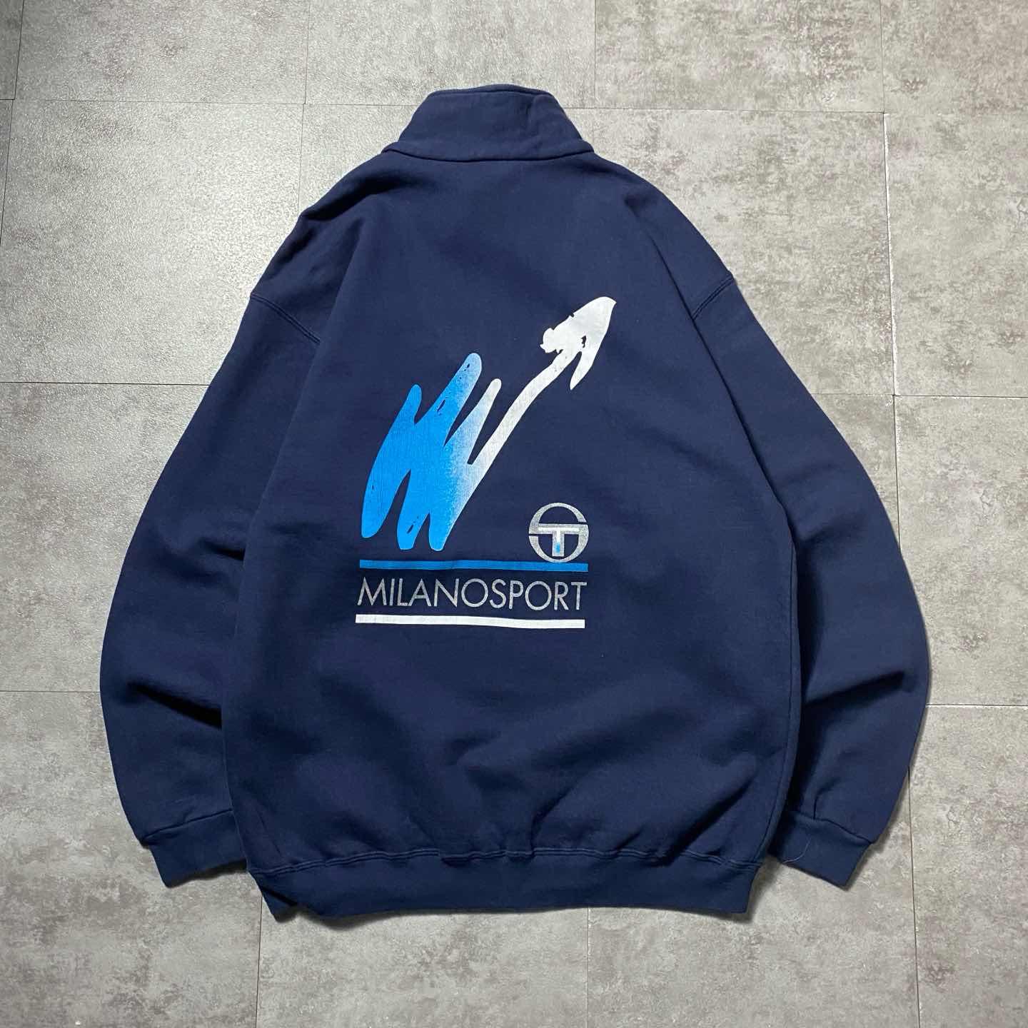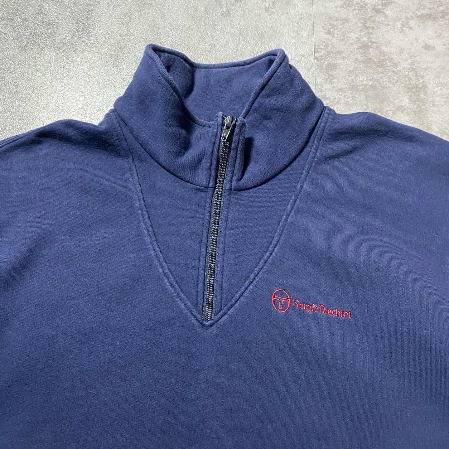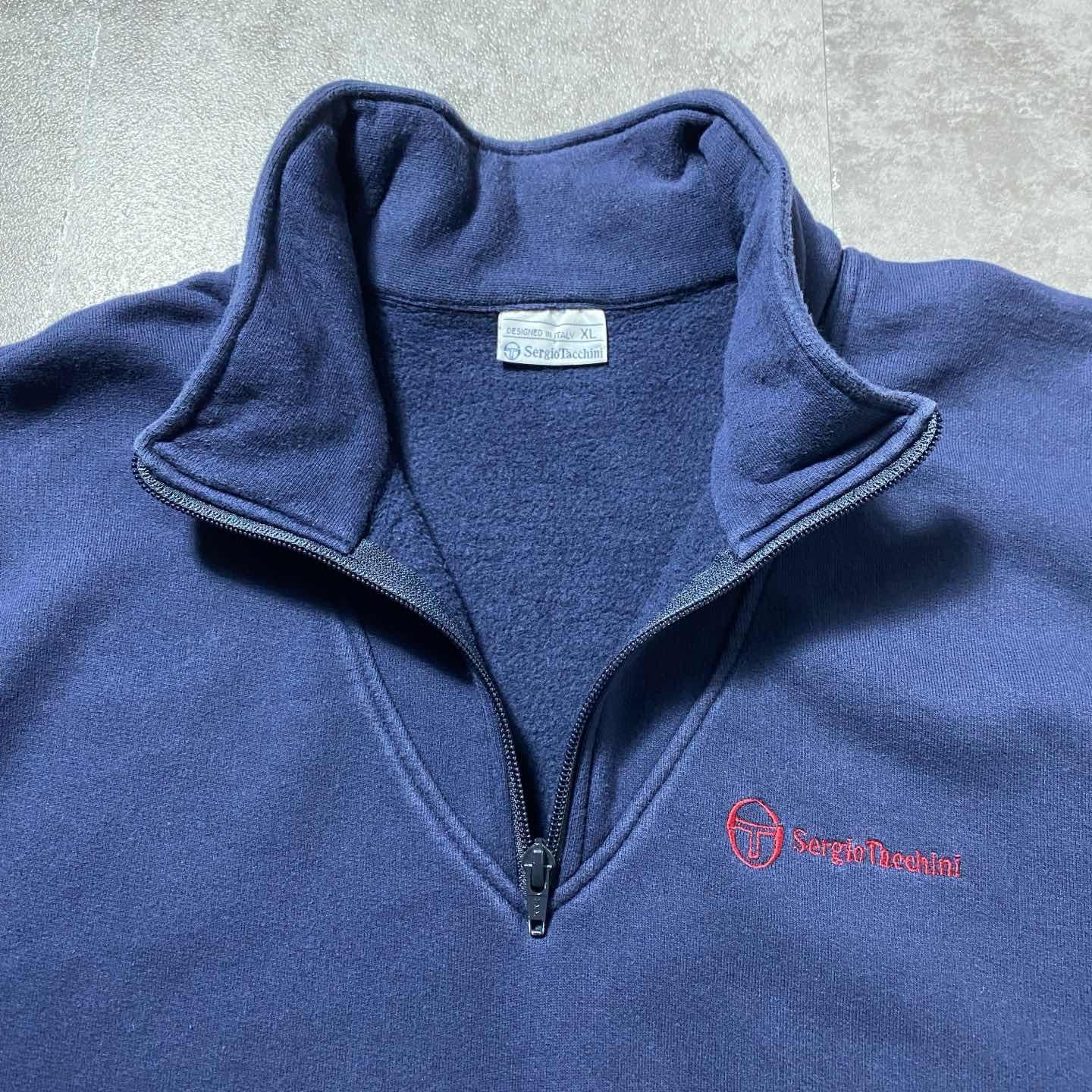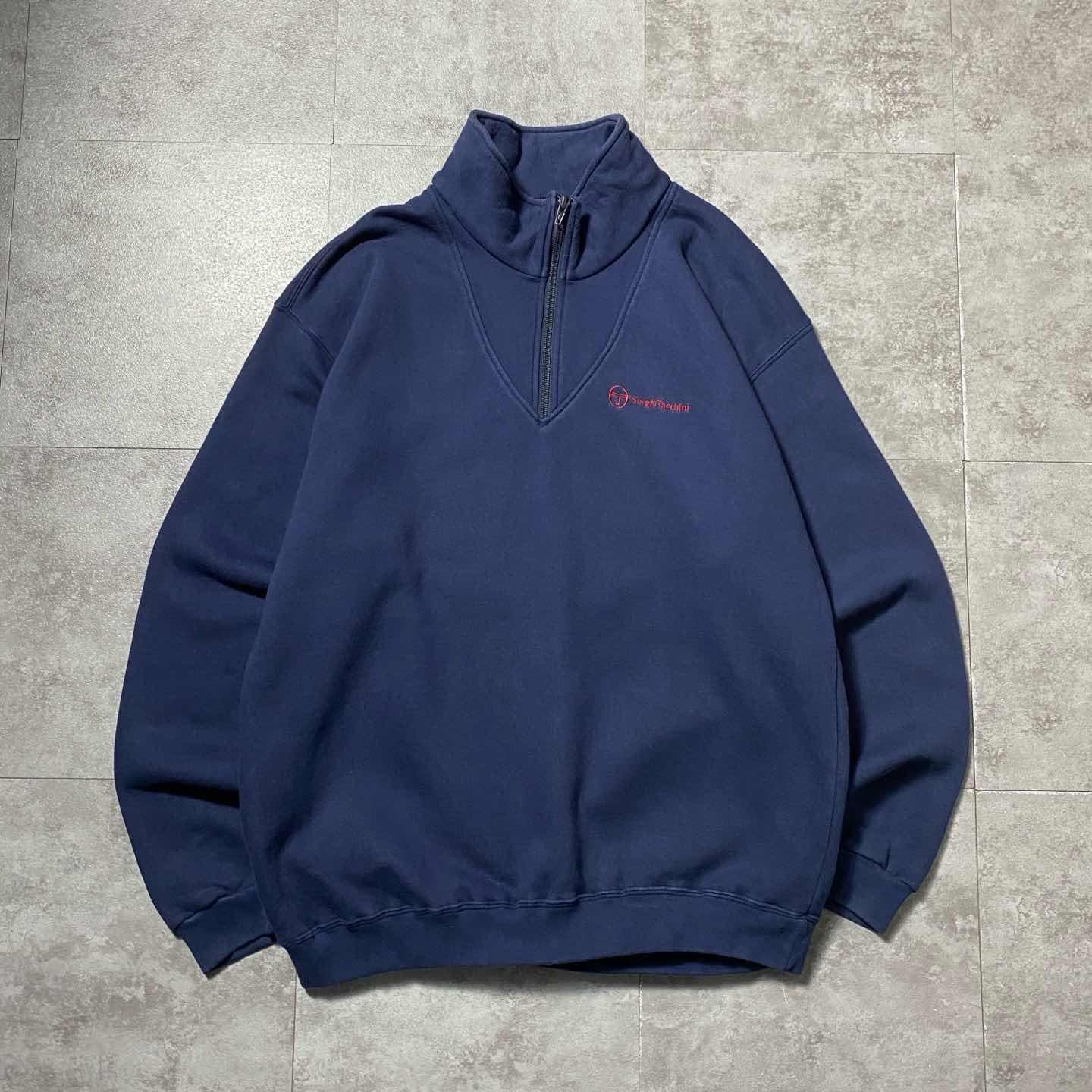 90s セルジオタッキーニ 刺繍ロゴ ハーフジップ バックプリント スウェット