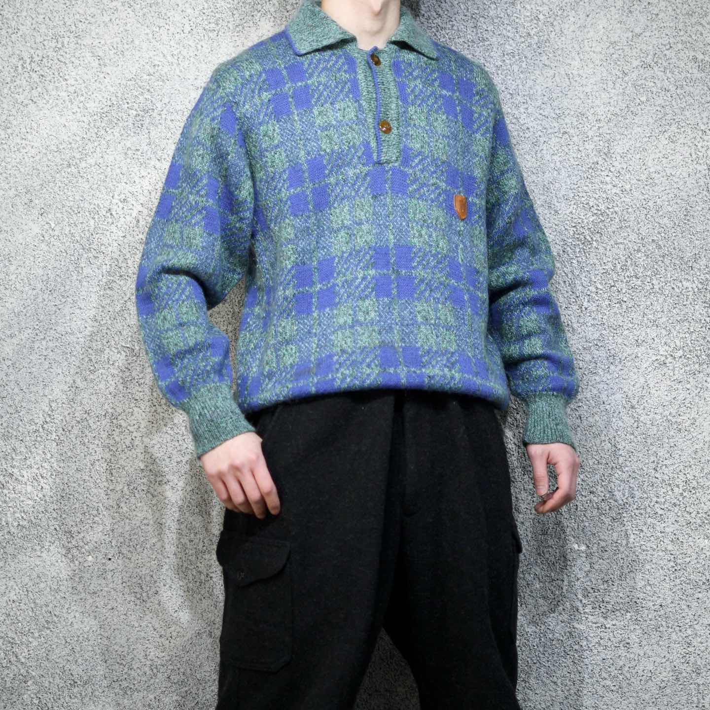 古着 モヘア アルパカ 毛足長 ニットポロ デザインニット ニット セーター